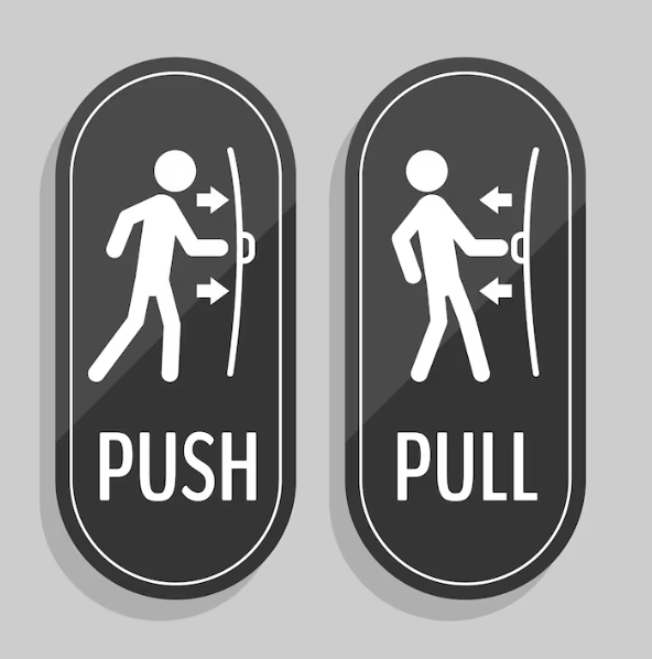 • Em viagens: quem já não se atrapalhou ao ler push e pull em uma porta nos Estados Unidos ou na Europa?